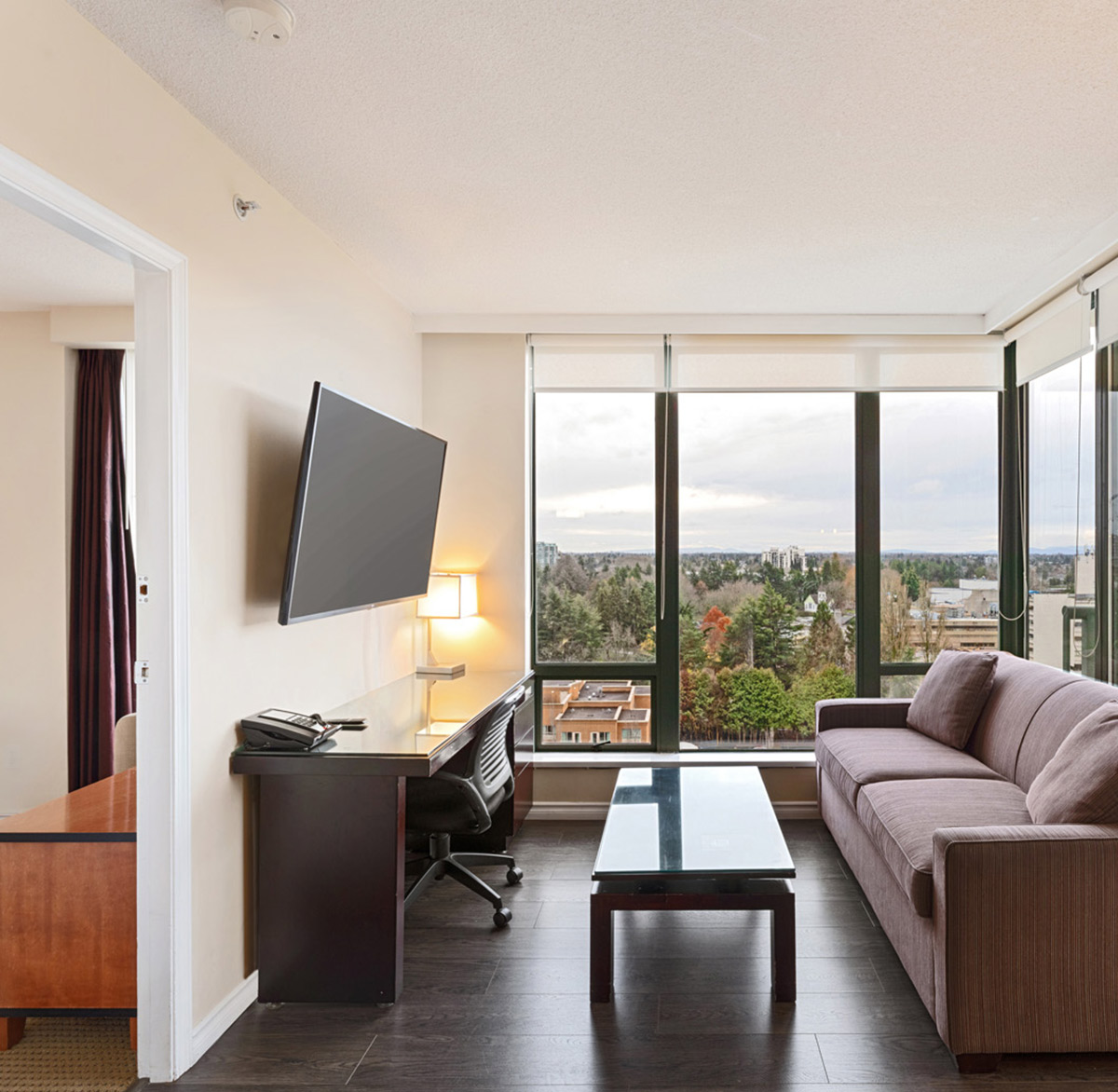 The Executive Hotel Vancouver Airport offers Richmond's most extensive mix of spacious guest rooms, suites, and fully furnished apartments to fit the needs of leisure and business travellers: 231 spacious, well-appointed Guest Rooms and Junior Suites. Plus 71 1, 2 and 3-bedroom full service, fully furnished Apartment rentals featuring separate living rooms, and fully equipped kitchens.